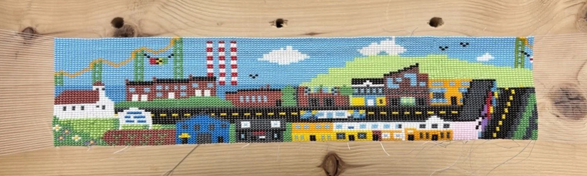 The project began during the Spring Program with the Bringing Our Minds Together sessions, where residents sat with Kris and shared what the North End means to them. Kris drafted the design based on this input and taught folks how to bead with the loom in the following session. Over the summer, the belt was displayed in the Neighbourhood Shop, allowing residents to continue working on it outside of session times. The project reminds us that relational work takes time to do in a good way.